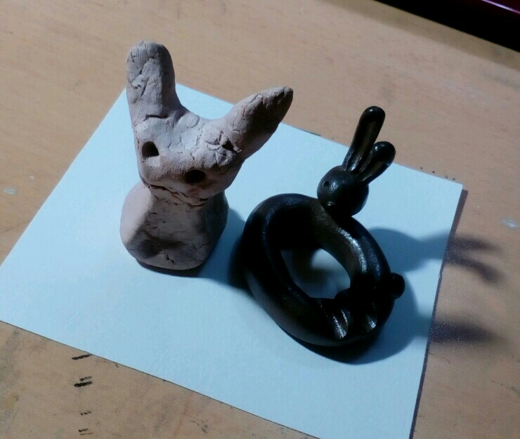 これは小学生(多分5年生の時)作った埴輪の兎と、