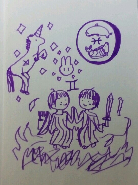 (↑さっきの天体での影響のとこ、柔軟宮が異様に多いことと月が魚座ってとこが強烈なのかもと思って描いた絵。笑)